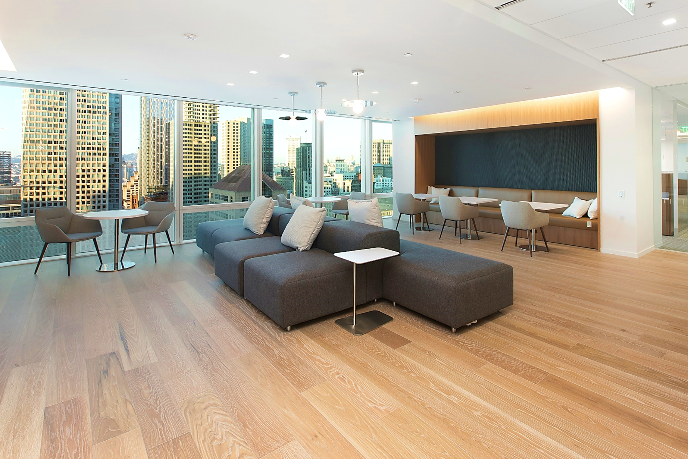 For their San Francisco office, Canopy oversaw the construction of four floors. Heavy coordination with Reed Smith was required, as their employees occupied the space throughout the design and construction process. The new office boasts upgraded lounge / pantry areas with new appliances, updated AV in the conference rooms, high-end finishes, and a clean, modern look throughout.